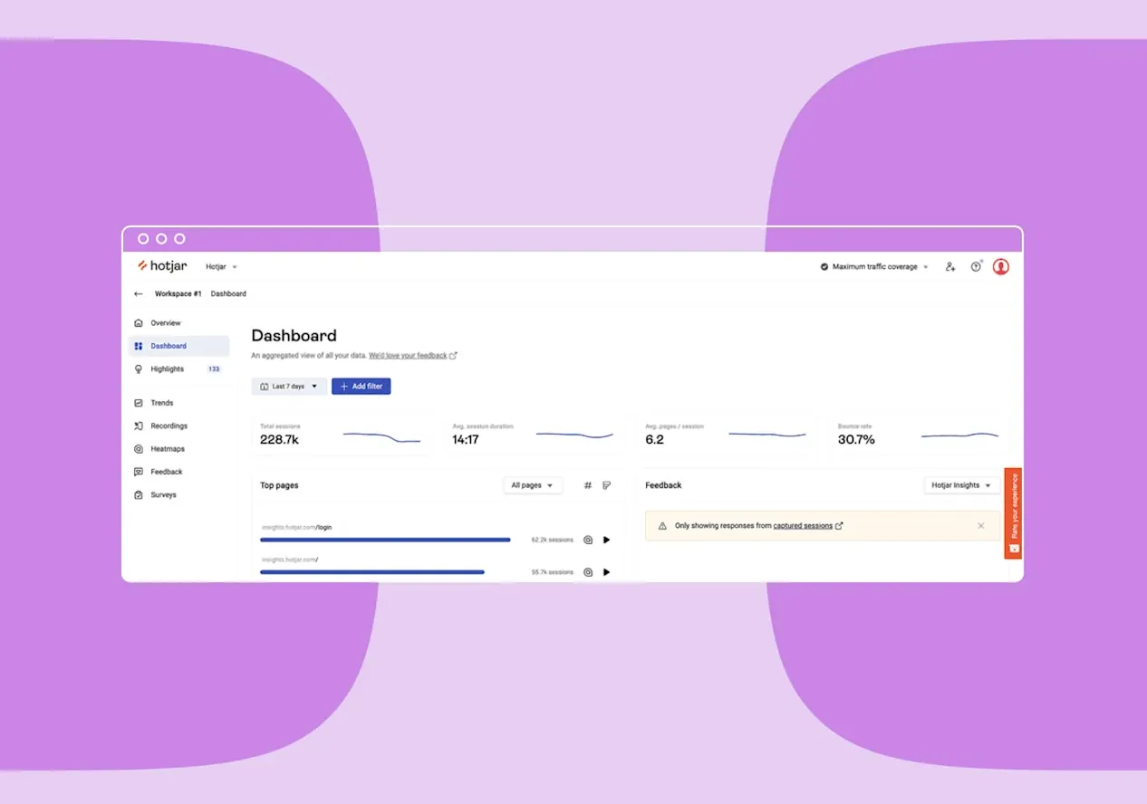 Hotjar is a customer feedback tool that makes it possible to view user behavior on your site with heatmaps, session recordings, and analytical tools. Hotjar makes it easy to uncover users' feelings and quickly identify underperforming pages.