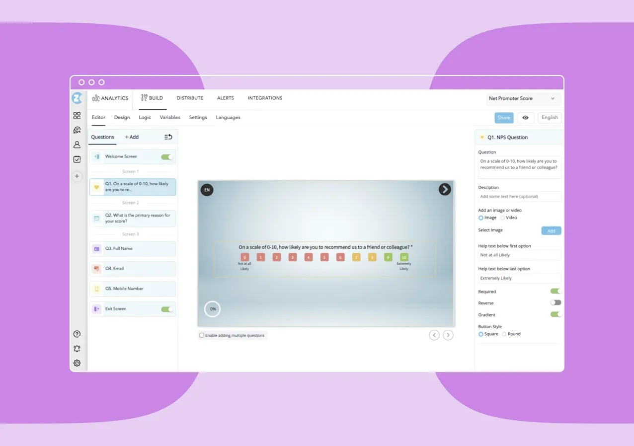 You can collect feedback with its easy-to-use interface and multi-channel options. Choose from a variety of question types—NPS, multiple-choice, open-ended—to ensure you get a diverse range of feedback.