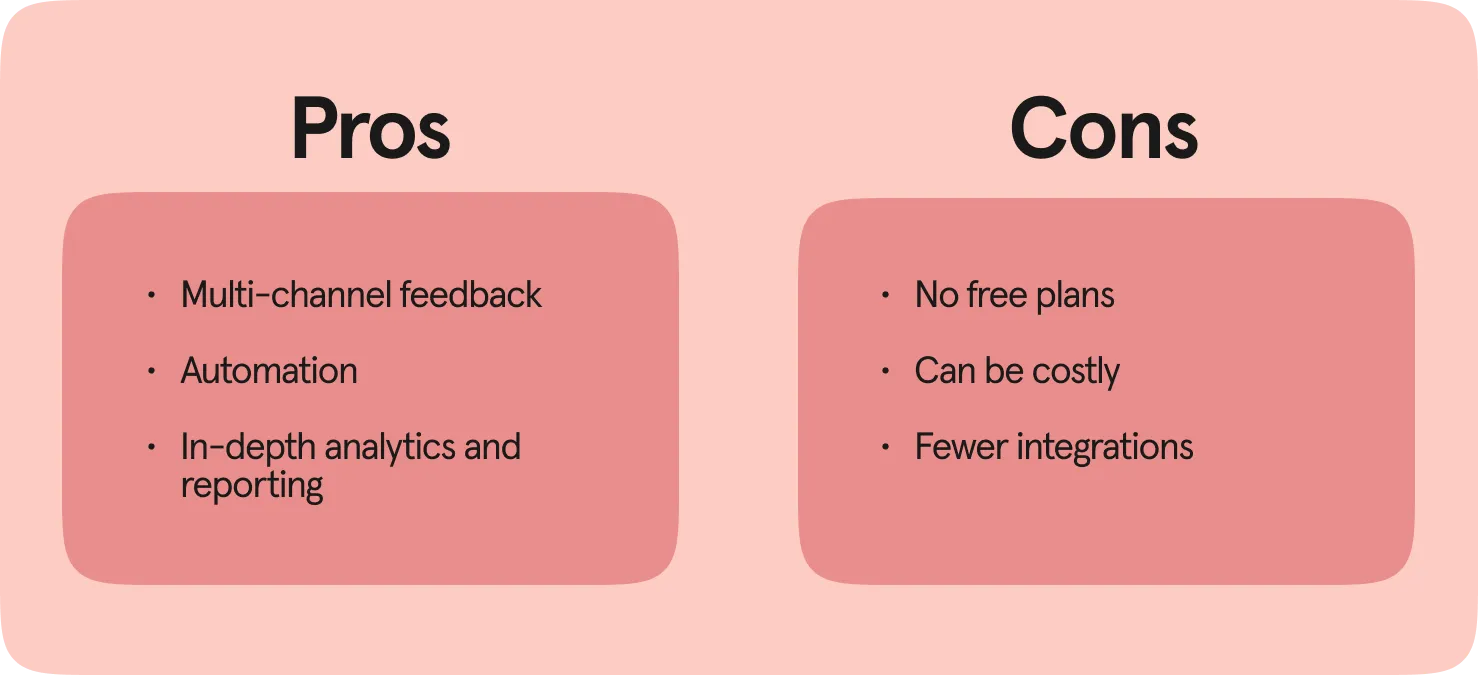 - Automation: Make sure your customer feedback tool allows for automation so you can ditch time-consuming manual processes, like emailing or analyzing results.