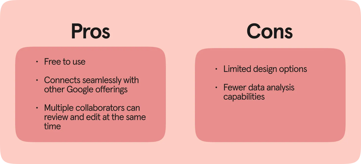 Google Forms is a great base option, but there are some limitations. You're limited when it comes to design customization, data analysis reporting, and question formatting.
