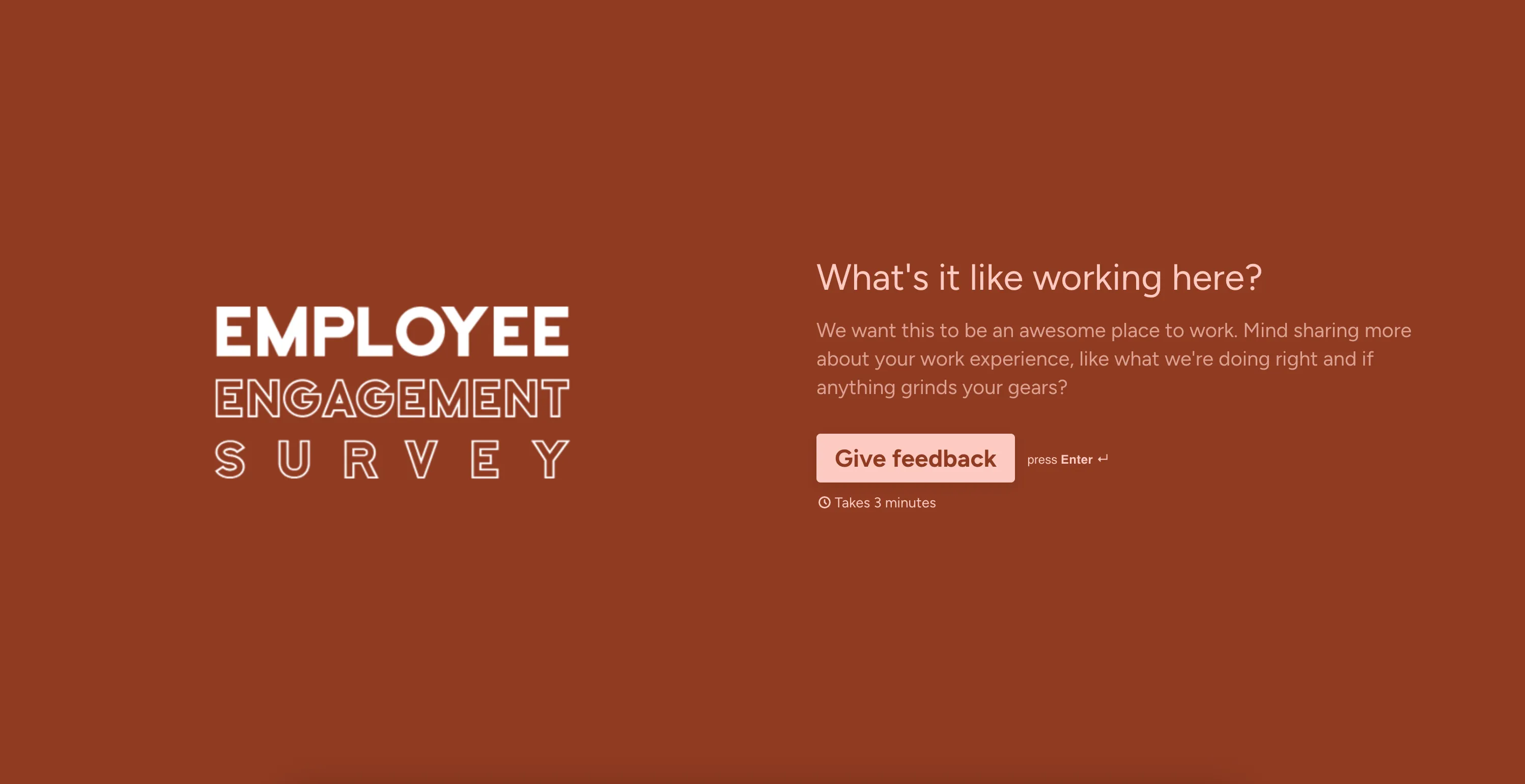 While surveys are a great tool for guiding business decisions, they can do far more than inform product roadmaps or prevent churn. Well-designed and thought-out surveys can engage employees and help you make sure everyone’s happy.