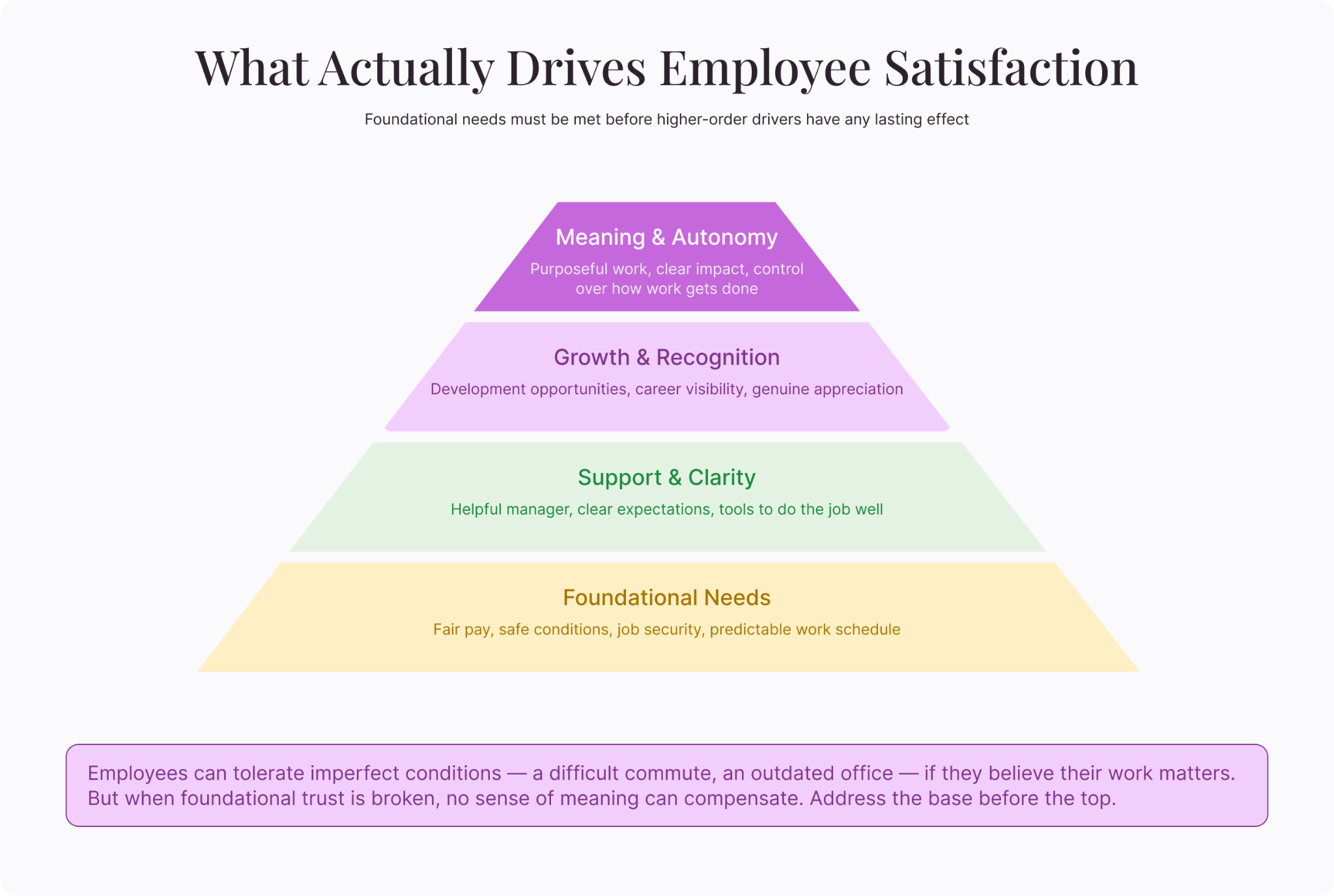 Meaning is one of the strongest predictors of sustained engagement. People can tolerate imperfect conditions—a difficult commute, an outdated office, a so-so salary—if they believe their work matters. But when the sense of purpose disappears, everything else starts to feel unbearable.
