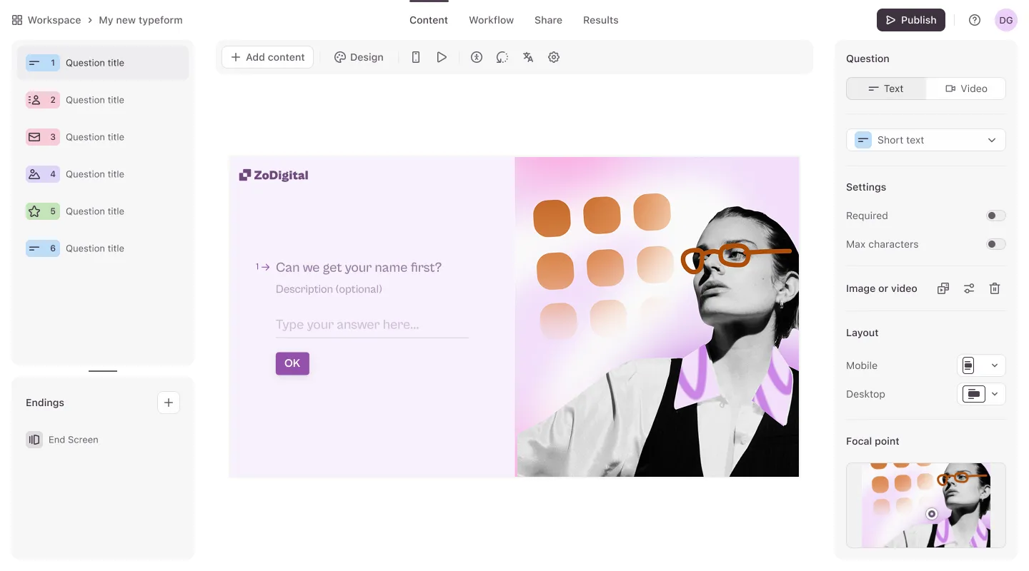 Typeform gives you full creative freedom to tailor every aspect of your forms with: