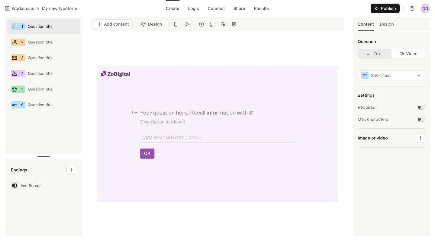 Typeform is ideal for those prioritizing design and branding. Our drag-and-drop builder lets you effortlessly add and rearrange questions while customizing nearly every aspect of your form: