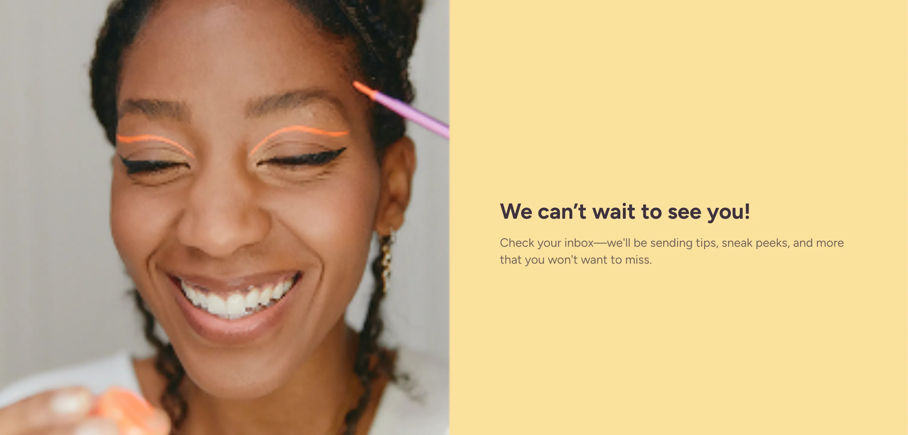 Instead of a simple, "Thanks for registering," leave registrants wanting more. An end screen with a quick message about behind-the-scenes content, tips to come, or other enticing content can get visitors excited about the event and keep them engaged pre-event.