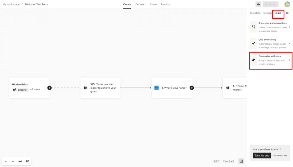 Now that the form builder is open, select the ‘Logic’ tab in the right-hand side panel and then select the ‘Personalise with data’ option