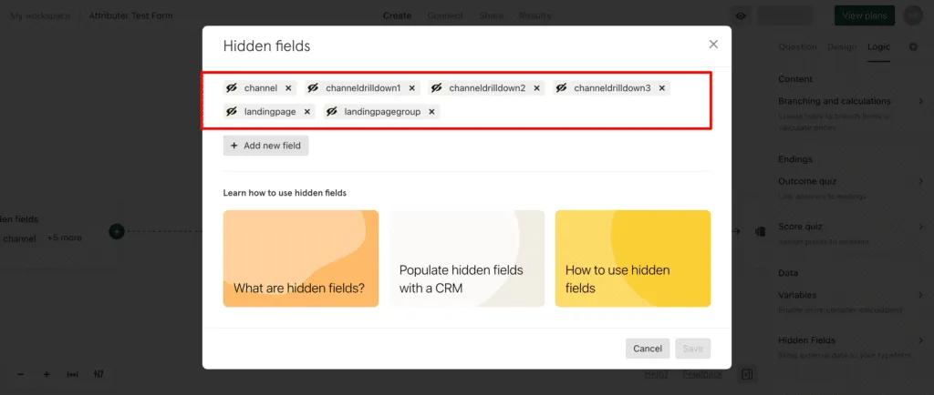 2. Add some hidden fields to your typeforms (documentation on how to do this is provided)