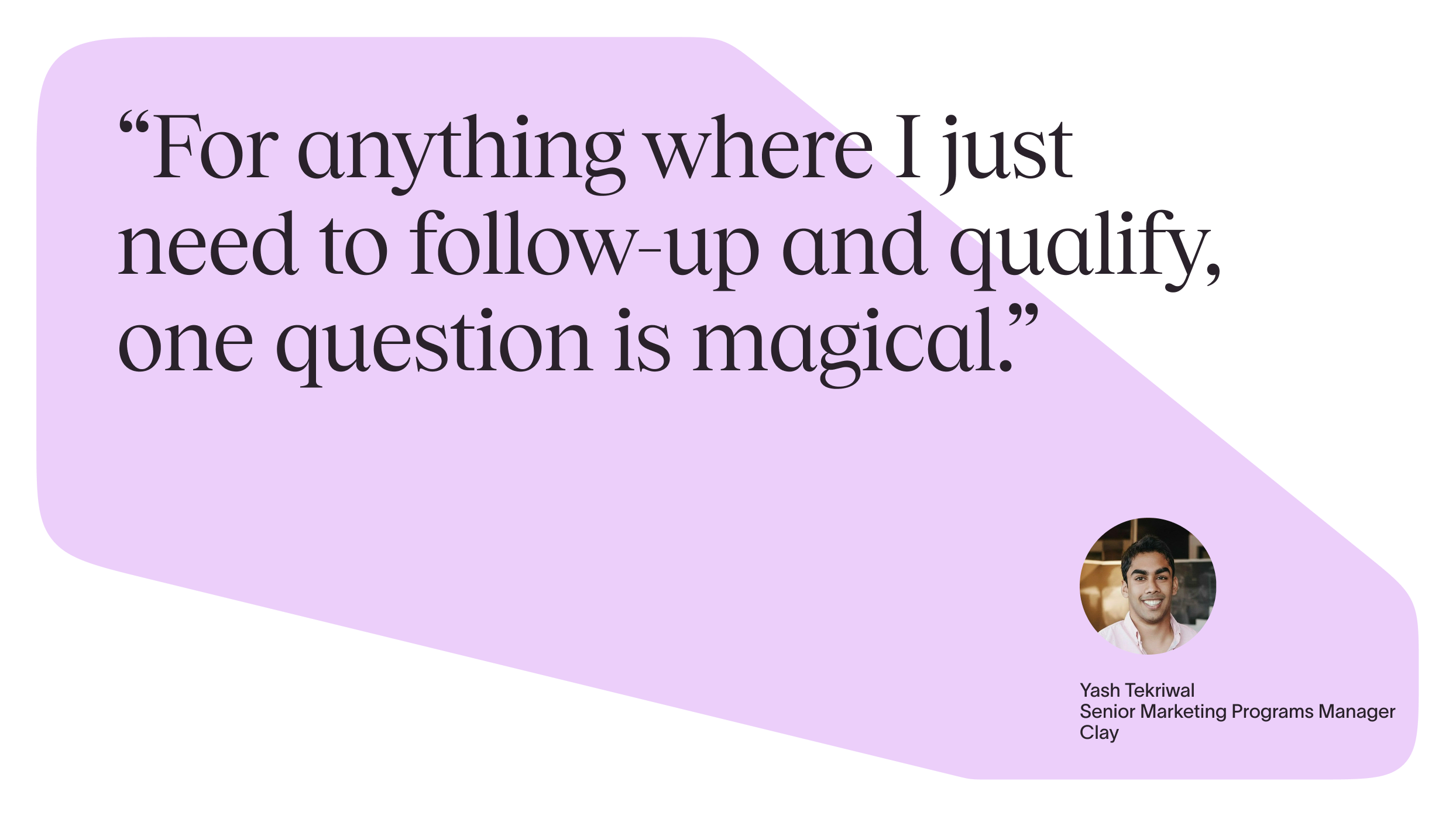 Of course, not every form can be one-question long. But, “for anything where I just need to follow-up and qualify,” says Yash, “one question is magical.” It’s better for prospects, and it enables fast follow-up.