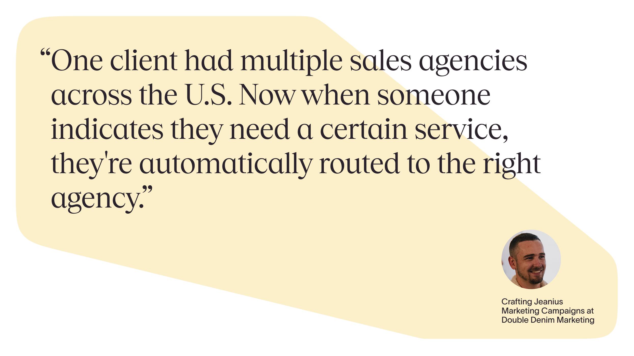 Rob Brooks from Double Denim Marketing discovered the power of asking questions strategically: "You don't overwhelm prospects with too many questions at once. Keep your ask simple, then build."