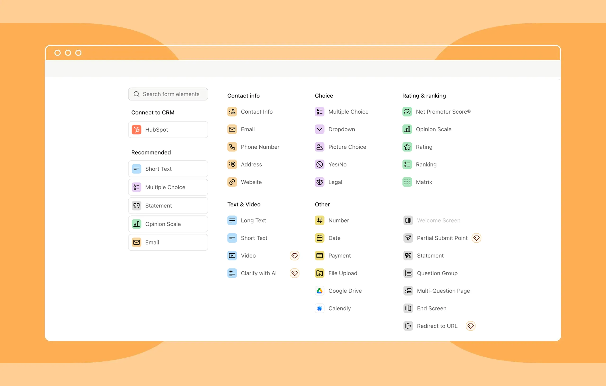 Typeform has 120+ integrations, including many popular apps. You can even integrate Typeform with Google—instantly converting any of your previous forms from Google Forms into a beautiful form within Typeform.
