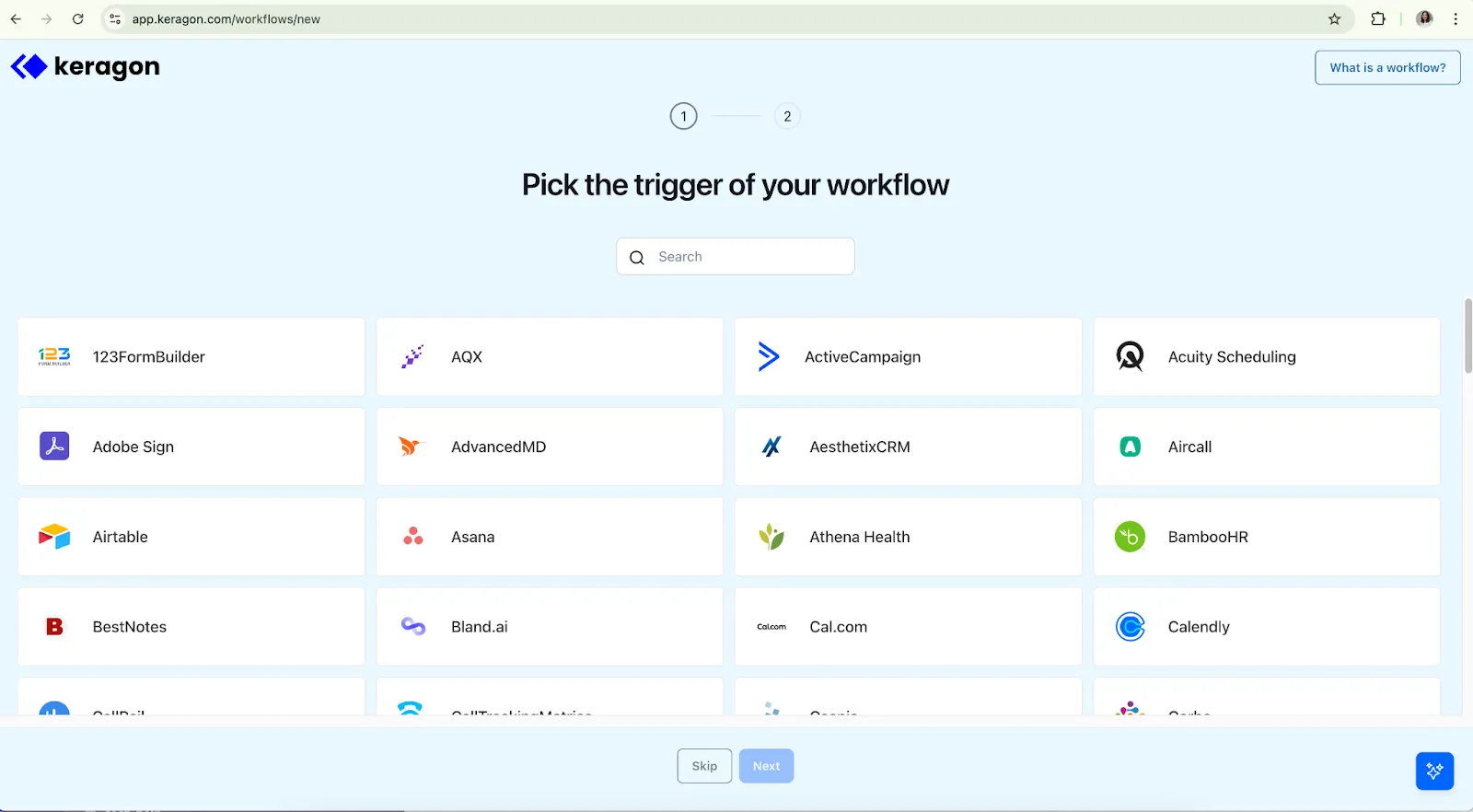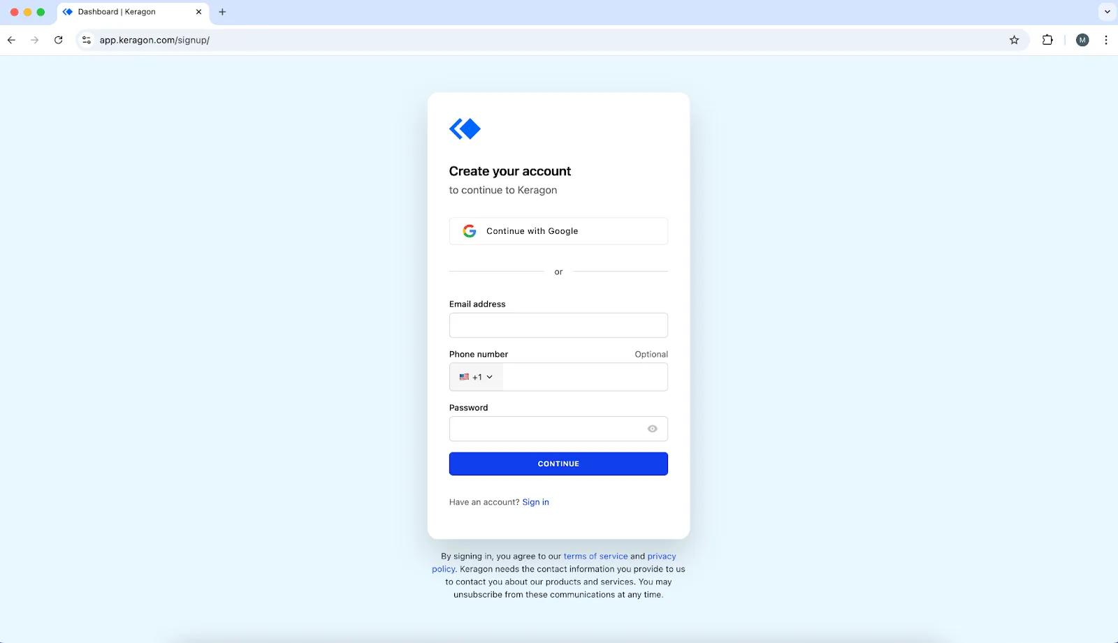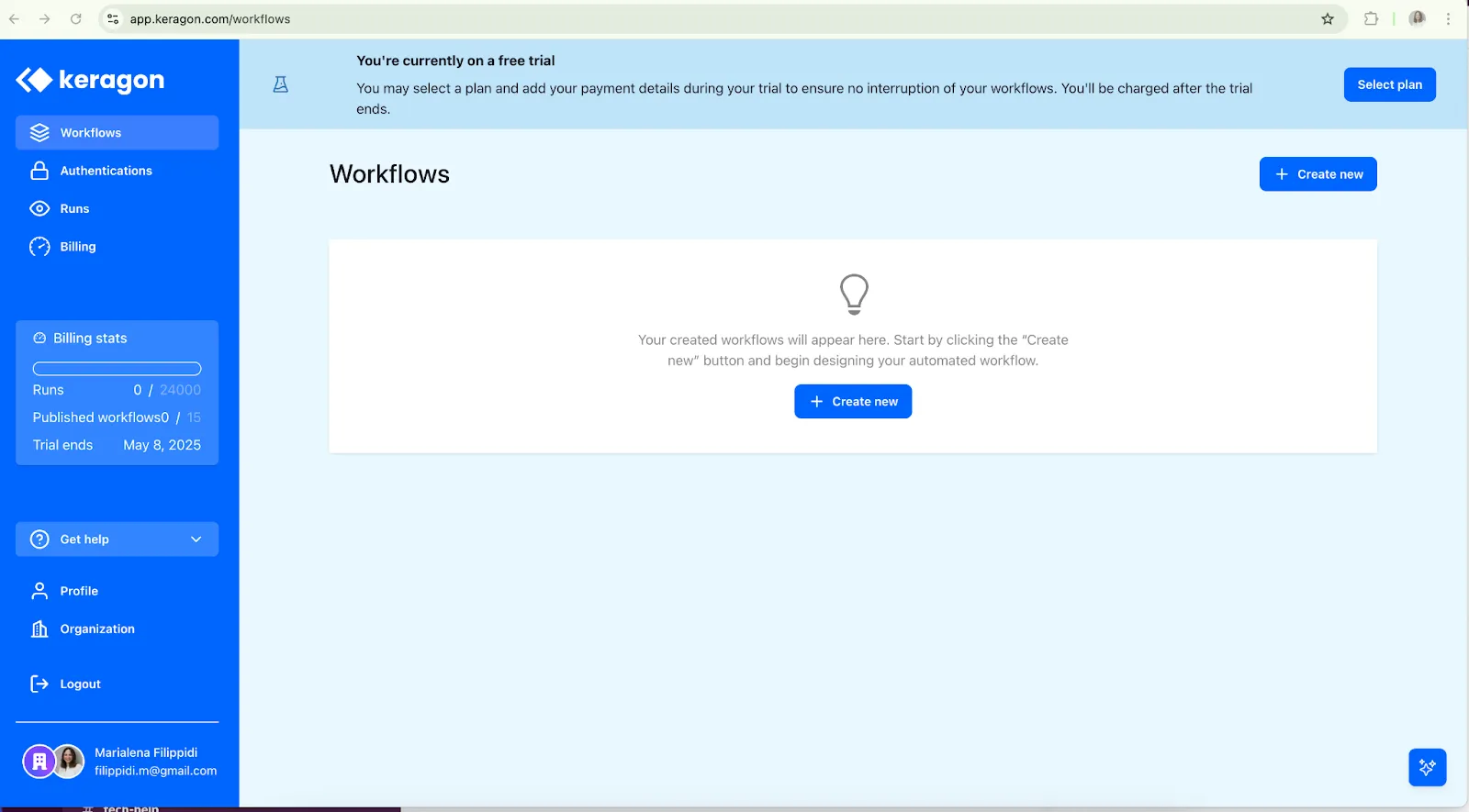 Log in to Keragon or sign up for an account (you are entitled to a 14day trial).