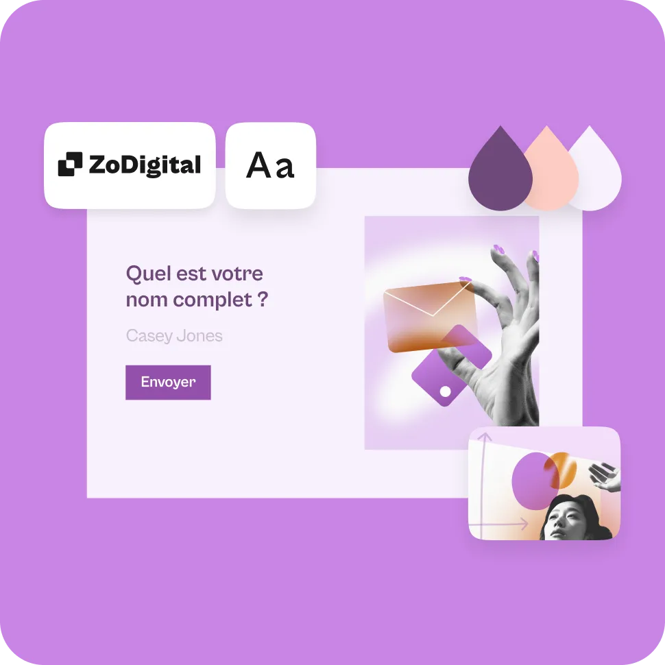 Associez n'importe quel modèle de formulaire d'inscription à votre marque avec des polices et des couleurs personnalisables, puis rendez-le plus attrayant avec des images, des GIF et des vidéos de la marque.