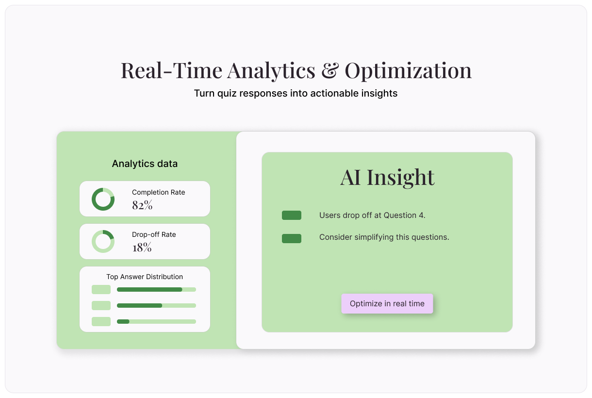 Typeform’s built-in analytics help you turn poll results into action. Your reporting dashboard shows all of your poll data, in one place. Find metrics like completion rates, drop-offs, and aggregated poll results. Collect instant, actionable insights that help you make better decisions.