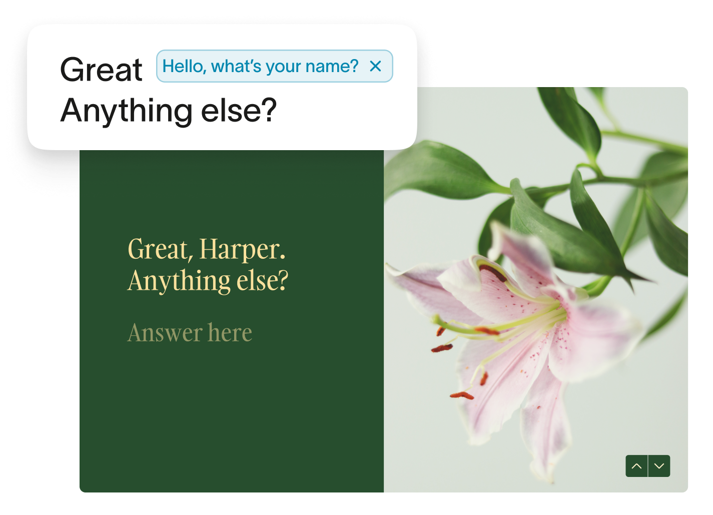 Build surveys with AI, let people schedule time, run calculations, or score leads—and follow up with personalized, automated messages.